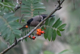 The Rowan berries are providing meals for a number of birds at present, particularly Blackbirds and Bullfinches.